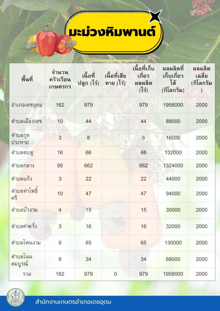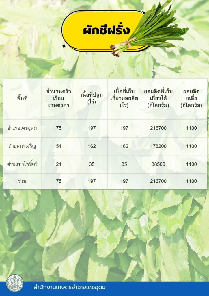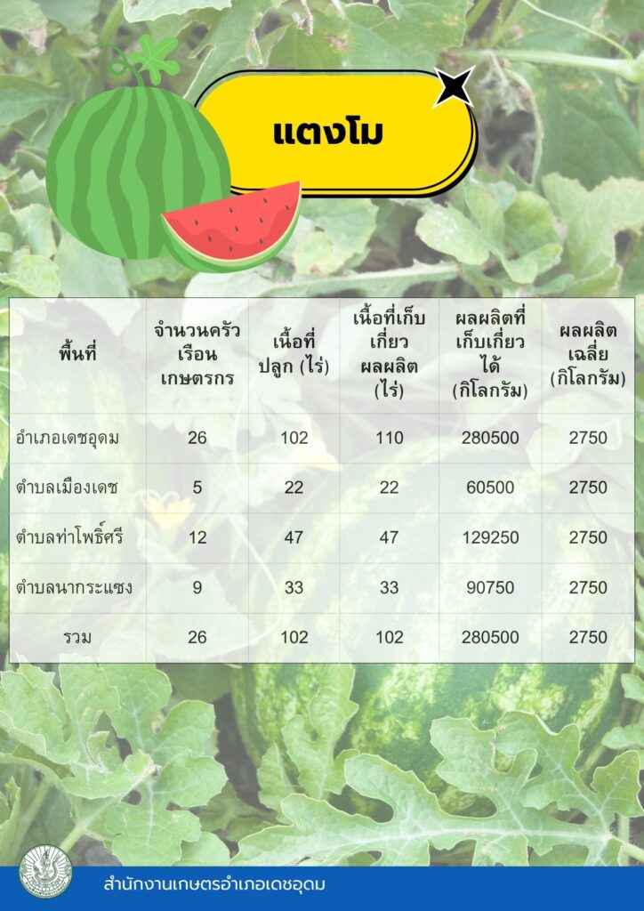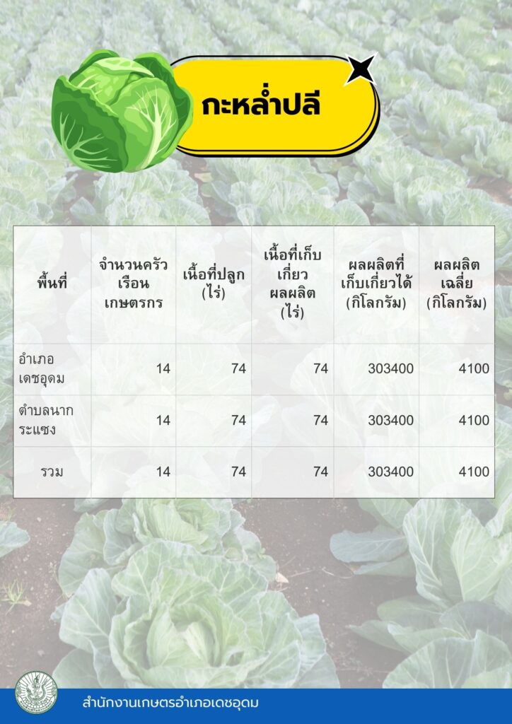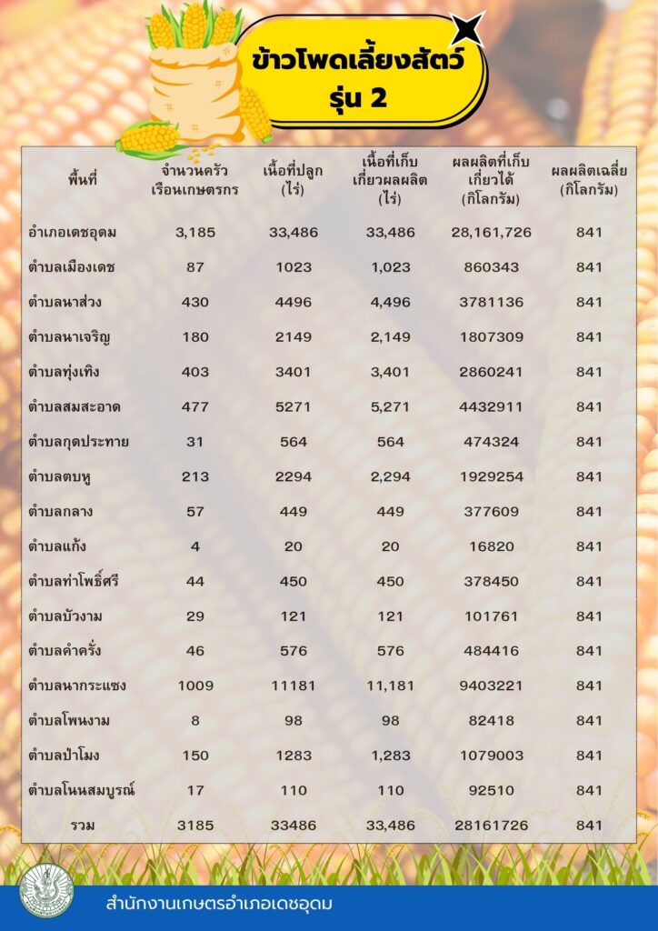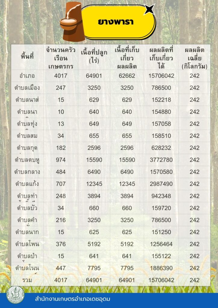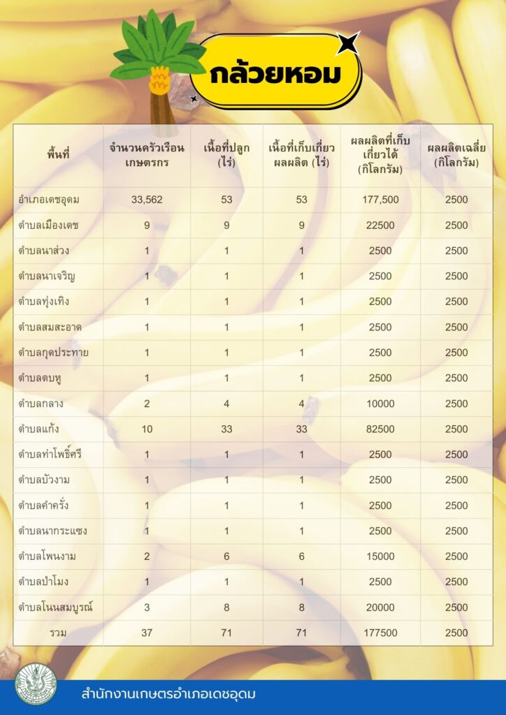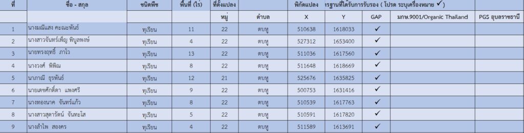 ข้อมูลพื้นฐานทางเศรษฐกิจ ข้อมูลเอกภาพพืชเศรษฐกิจที่สำคัญของอำเภอเดชอุดม ระดับอำเภอ ข้อมูลเอกภาพพืชเศรษฐกิจที่สำคัญของอำเภอเดชอุดม ระดับตำบล ข้อมูลเกษตรกรที่ได้รับรองมาตรฐานที่มีในปัจจุบัน ระดับอำเภอ ประจำปี 2569 มาตรฐานสินค้าเกษตรกร