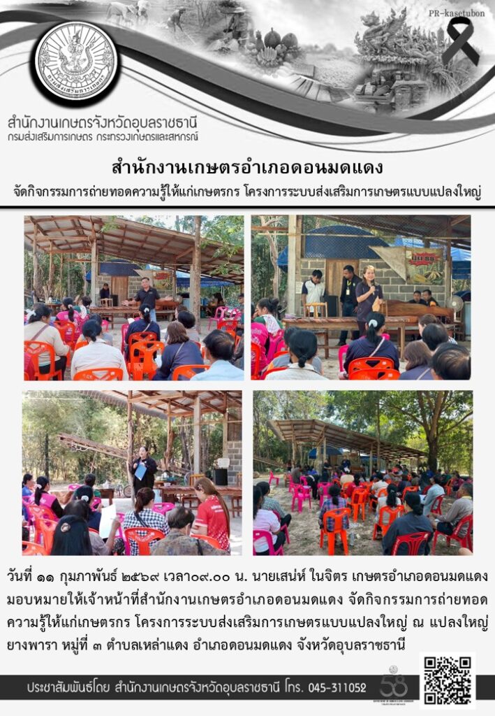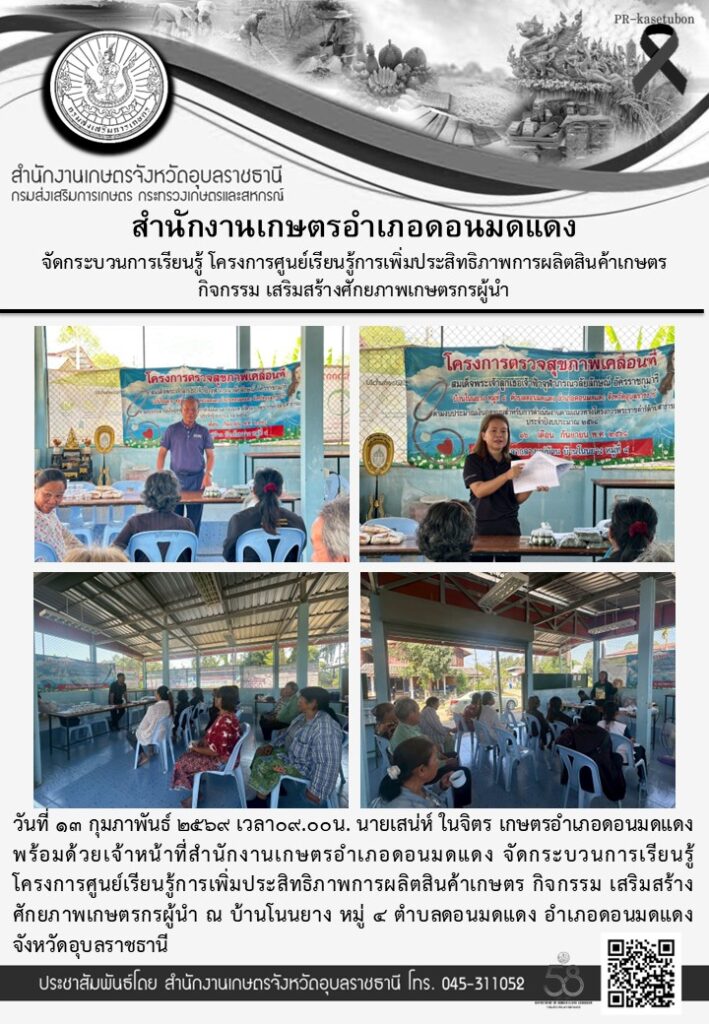 จัดกระบวนการเรียนรู้ โครงการศูนย์เรียนรู้การเพิ่มประสิทธิภาพการผลิตสินค้าเกษตร กิจกรรม เสริมสร้างศักยภาพเกษตรกรผู้นำอ่านเพิ่มเติม