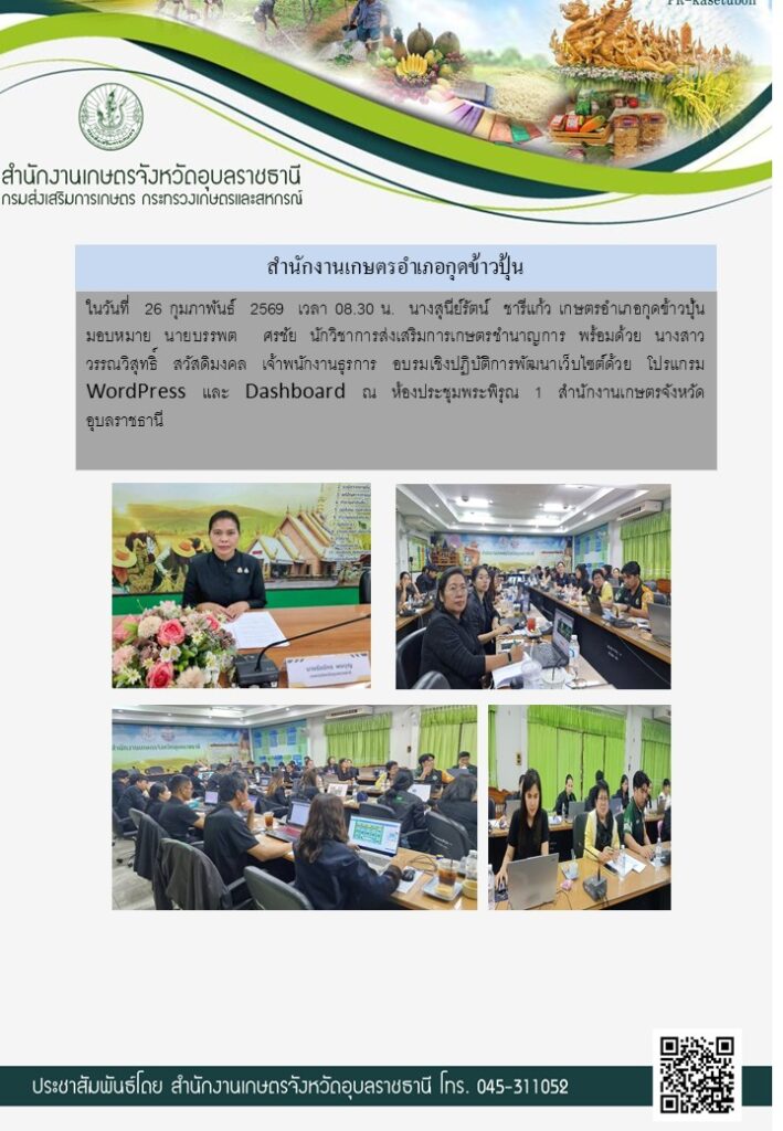 ประชุมประจำสัปดาห์อ่านเพิ่มเติมร่วมจัดเวทีชุมชนโครงการระบบส่งเสริมเกษตรแบบแปลงใหญ่ข้าว ประจำปีงบประมาณ 2569อ่านเพิ่มเติมร่วมต้อนรับคณะกรรมการตรวจประเมินผลงานฯอ่านเพิ่มเติมติดตามสถานการณ์การระบาดโรคพุ่มแจ้ในมันสำปะหลังอ่านเพิ่มเติมงานวันคณะกรรมการหมู่บ้านอ่านเพิ่มเติมประชุมรับฟังความคิดเห็นเกี่ยวกับ "ร่างข้อเสนอการปรับปรุงการแบ่งส่วนราชการฯ"อ่านเพิ่มเติมอบรมการพัฒนาเว็บไซต์อ่านเพิ่มเติมประชุมเตรียมความพร้อมการตรวจรับประเมินการดำเนินงาน โครงการ 1 จังหวัด 1 ศูนย์เรียนรู้โครงการอันเนื่องมาจากศูนย์พระราชดำริต้นแบบ ประจำปีงบประมาณ พ.ศ.2569อ่านเพิ่มเติม