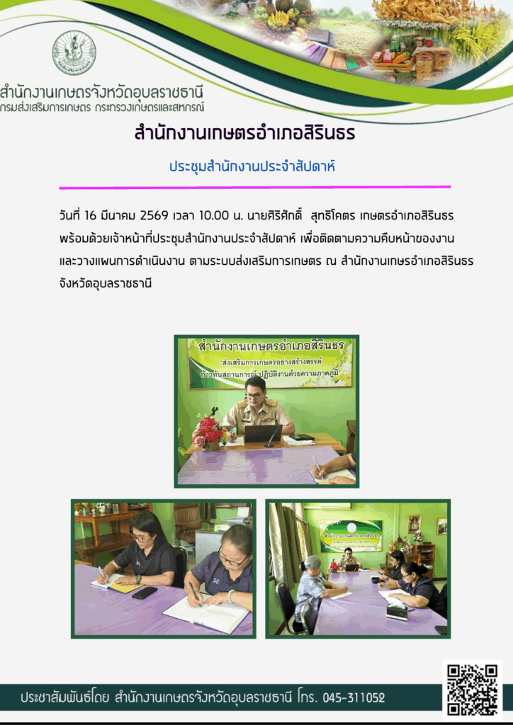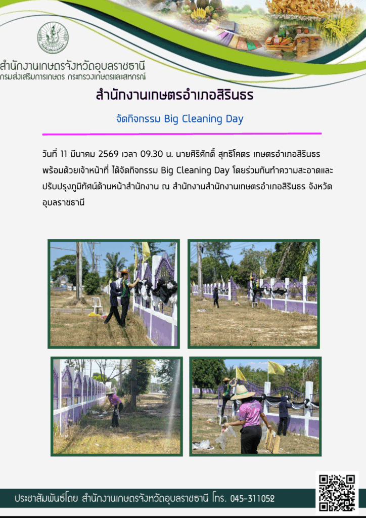 จัดกิจกรรม Big Cleaning Dayอ่านเพิ่มเติมประชุมสำนักงานประจำสัปดาห์อ่านเพิ่มเติมร่วมประชุมสัญจรกำนันผู้ใหญ่บ้าน ตำบลโนนก่ออ่านเพิ่มเติมร่วมกิจกรรมรณรงค์การไถกลบตอซังและหว่างเมล็ดปอเทืองอ่านเพิ่มเติม6 พ.ย. 2568 ติดตามสถานการณ์โรคพืช (ยางพารา)อ่านเพิ่มเติม