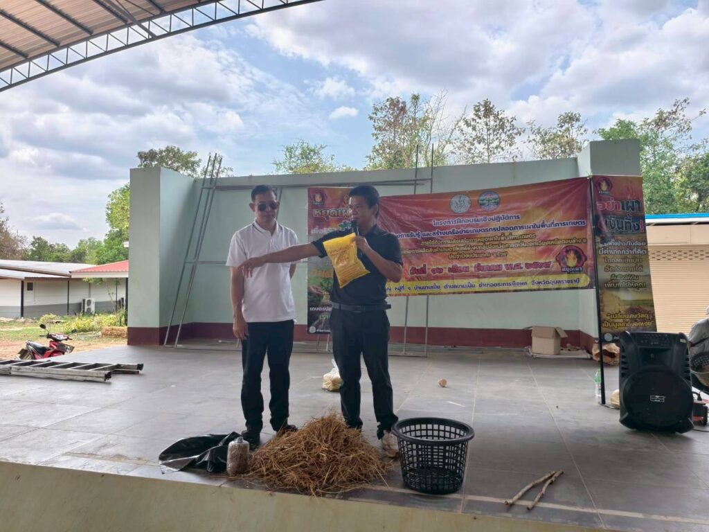 ภาพกิจกรรมสร้างการรับรู้และฝึกปฏิบัติการผลิตเห็ดฟางในตระกร้า