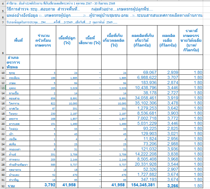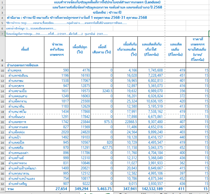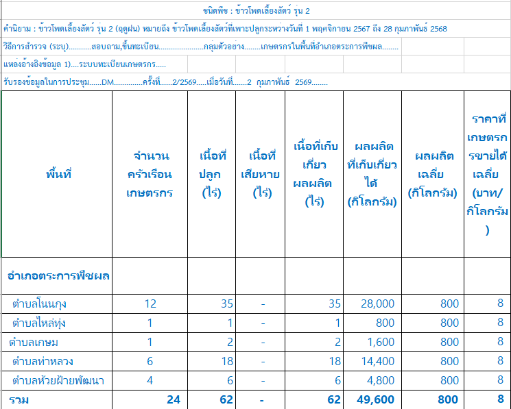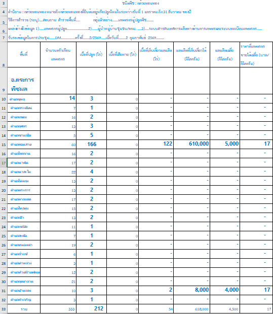 ข้อมูลการขึ้นทะเบียนเกษตรตามชนิดพืชที่สำคัญในอำเภอตระการพืชผล