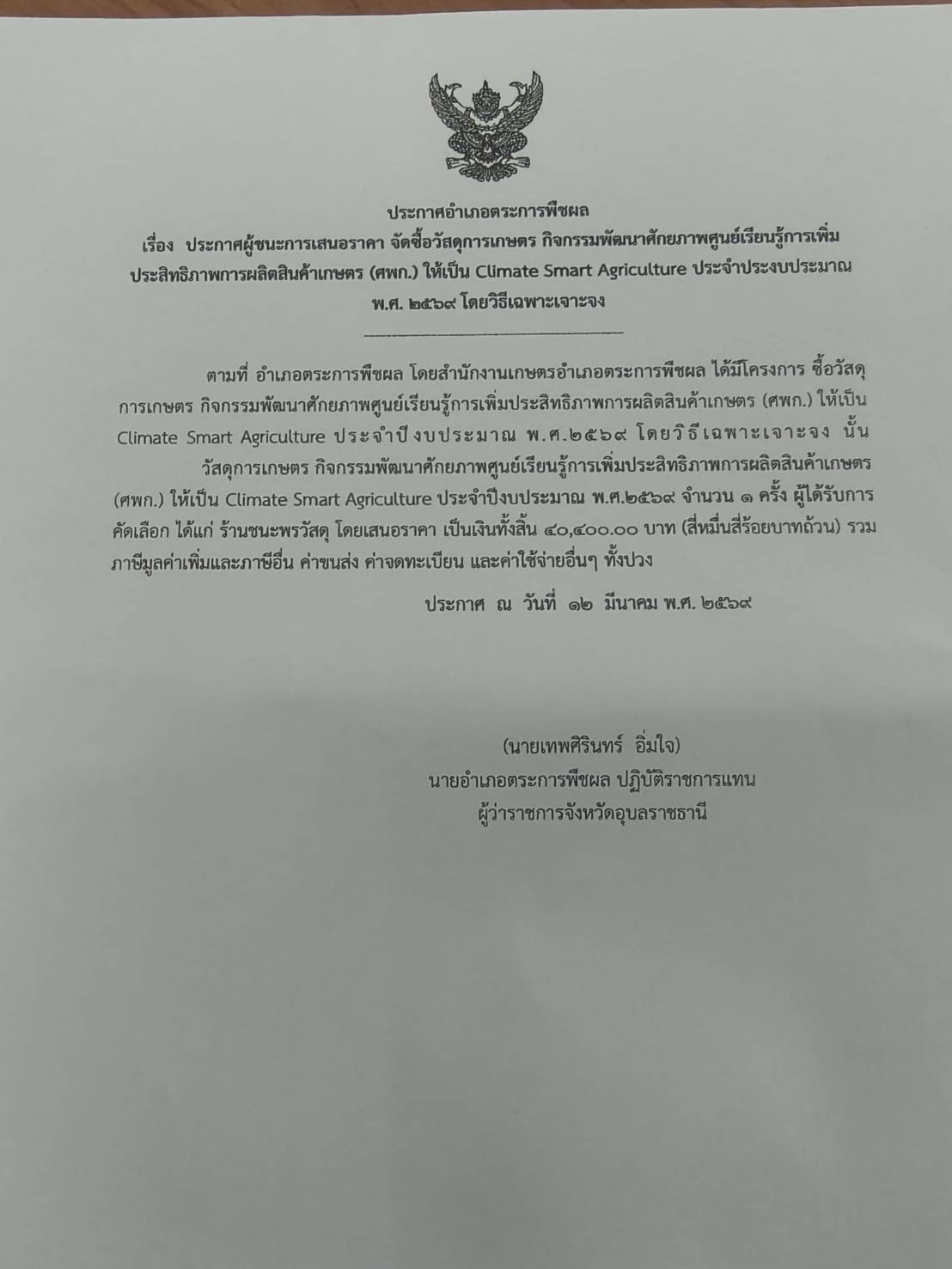 ประกาศอำเภอตระการพืชผล